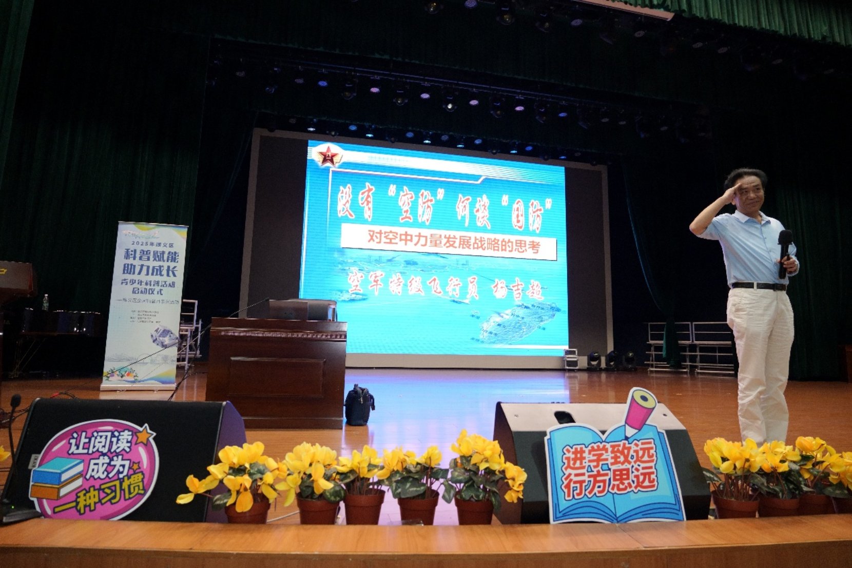 啟動儀式后,空軍指揮學院原教授、空軍特級飛行員楊吉超大校為來到現場的數百名師生進行了專題講座。他以9月3日盛大閱兵式的恢宏場景為開篇,生動闡釋了空軍在現代戰爭和國家安全格局中的重要地位。