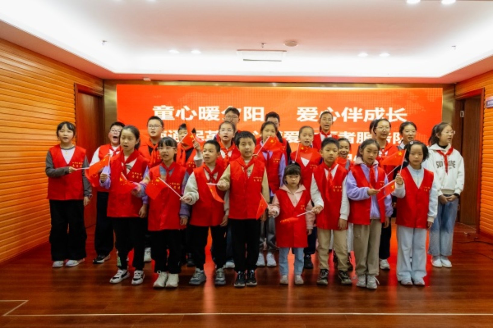 此次南通民革·童心博愛志愿者服務隊走進市北養老中心,特意安排了22位小志愿者,他們身著志愿者馬甲,胸前飄揚著鮮艷的紅領巾,為市北養老中心的老人們帶來了精心準備的文藝節目。清脆嘹亮的合唱、聲情并茂的詩朗誦、悠揚歡快的二胡……一個個節目輪番上演,贏得了老人們陣陣熱烈的掌聲。文藝表演結束后,小志愿者們把精心準備的重陽節禮物送到每一位老人手中。