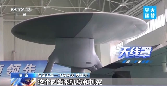 我們看到它有一個大大的圓盤,實際上它是一個預警天線的天線罩,這個圓盤跟機身和機翼這樣的大部件相比,顯得比例比較大,因為主要是我們要達到比較大的探測距離,這么一個大的圓盤在這個小噸位的飛機上面已經做到了極限。