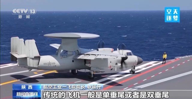 總臺央視記者 李寧:在我身邊的這個就是我國第一型固定翼艦載預警機——空 警-600,它是航母編隊的“千里眼”,同時也是“司令部”。它的成功研制也標志著我國海軍作戰(zhàn)能力得到了質的提升。