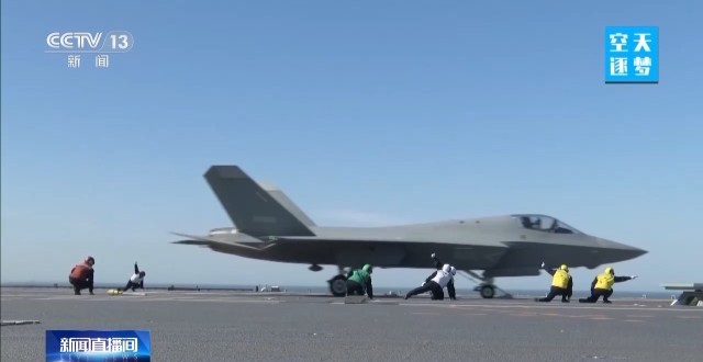 總臺央視記者 崔霞:今天大家看的是殲15-T。這個T字意義非凡,它代表著中國艦載機進入了彈射起飛的一個新的時代。