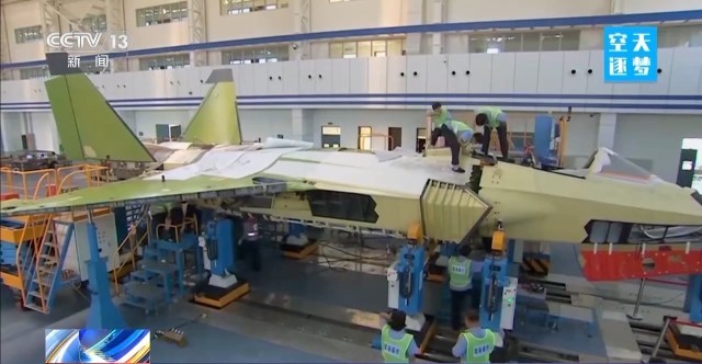 總臺央視記者 李寧:這是一架正在生產中的殲-35,它是我國自主研制的最新一代的隱身艦載戰(zhàn)斗機,它采用一體化設計,單座雙發(fā)外傾雙垂尾,是一款艦載多用途戰(zhàn)斗機,它主要是以制空作戰(zhàn)為主,兼顧對面作戰(zhàn)。