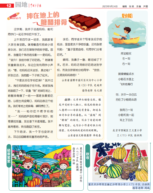 點評:文章開頭鋪墊自然,爆 發沖突時令人揪心,結尾的轉折出 人意料——母親沒有責備,卻送來 曲奇和分享的善意。從“羞愧”到 “驕傲”的轉變,寫出了母愛的理 解與寬容,也寫出小作者對獨立的 渴望,及對媽媽的愛的深刻理解。?