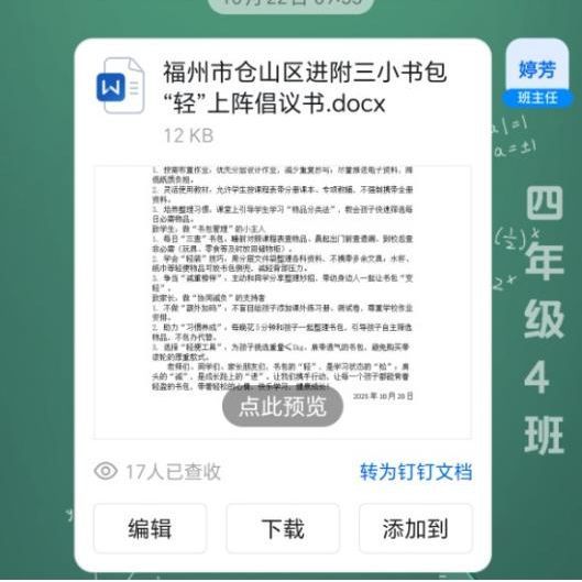 同時,學校向全體家長發布《校園書包‘輕’上陣倡議書》,通過這一倡議的發布與傳遞,見證家校齊心聚力、共啟減負征程的積極行動。