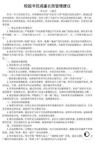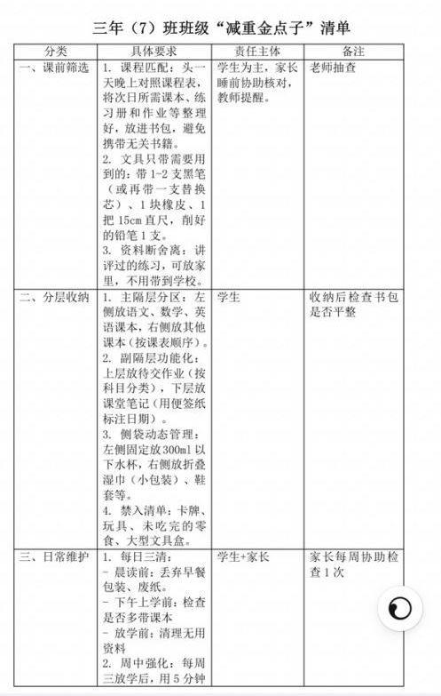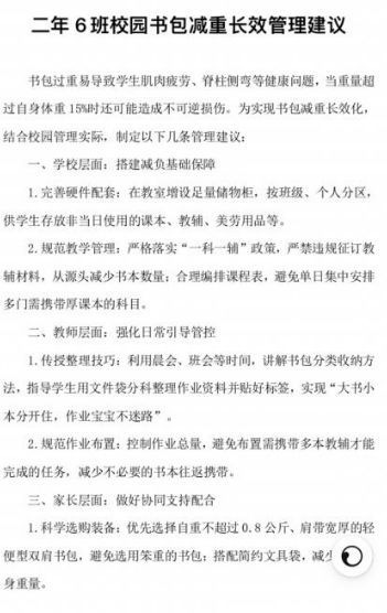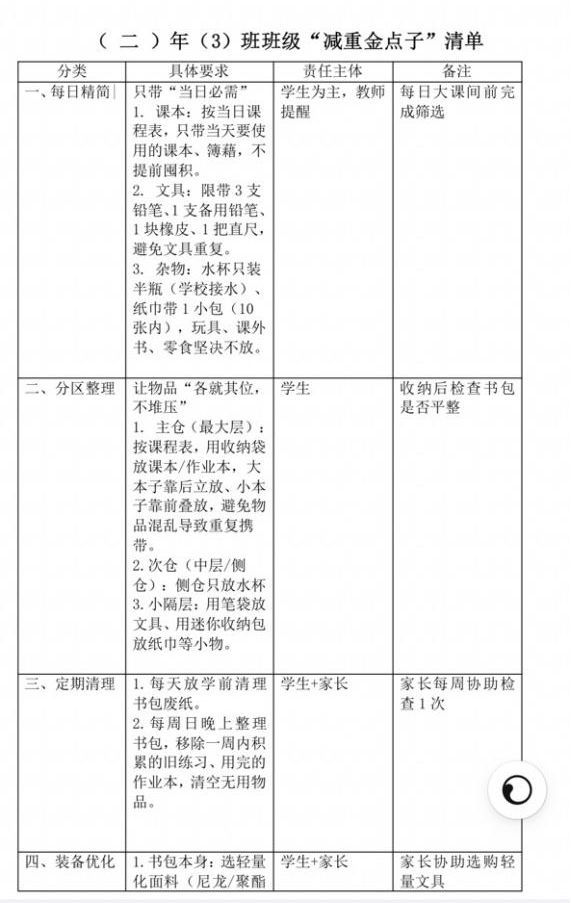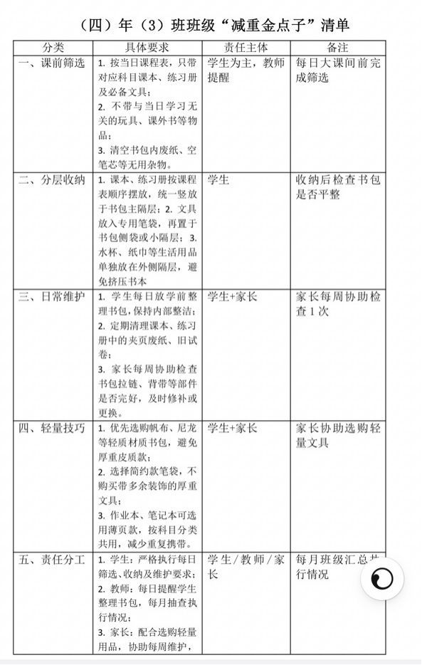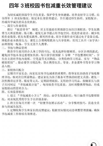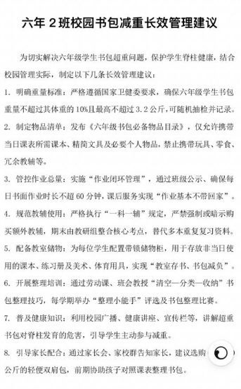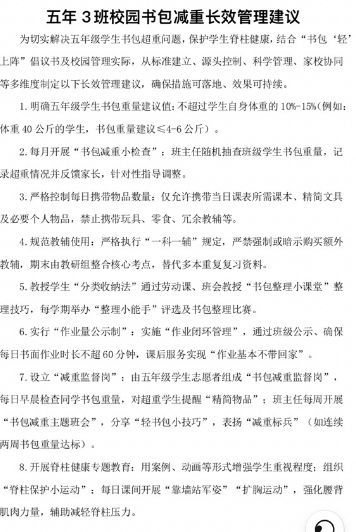 活動最后,每個班級發布《校園書包減負長效管理建議》,將“輕裝理念”納入學校常規管理,讓減負成效持續惠及每一位學子。