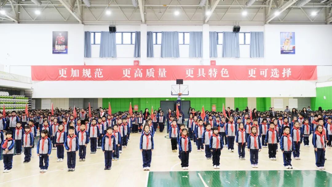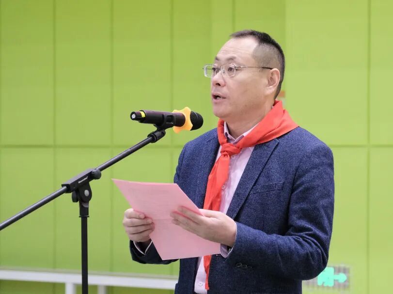 陳輝指出,紅領巾的“神圣”,從不是因為它的布料有多特別,而是因為每一個戴它的人,都在用心詮釋“少先隊員”這四個字的意義。它是課堂上專注聽講的眼神,是課間主動撿起紙屑的彎腰,是遇到同學有困難時伸出的小手,是見到師長時響亮的一聲“老師好”。這些看似微小的行動,都是在“守護”紅領巾的光榮,都是在踐行少先隊員的責任。陳輝送給新老隊員們三句“成長箴言”,希望能陪伴孩子們在紅領巾的指引下,一步步成為更優秀的追光少年。一是以紅領巾為“榮”,把“光榮感”裝進行囊;二是以紅領巾為“燈”,把“求知欲”化作力量;三是以紅領巾為“旗”,把“責任感”扛在肩上。他希望中隊輔導員們能繼續用心傾聽孩子們的想法,用愛守護他們的天真,用智慧引導他們成長——讓隊課成為“故事課”,讓活動成為“體驗課”,讓每一個孩子都能在星星火炬的照耀下,找到自己的興趣,收獲成長的快樂。