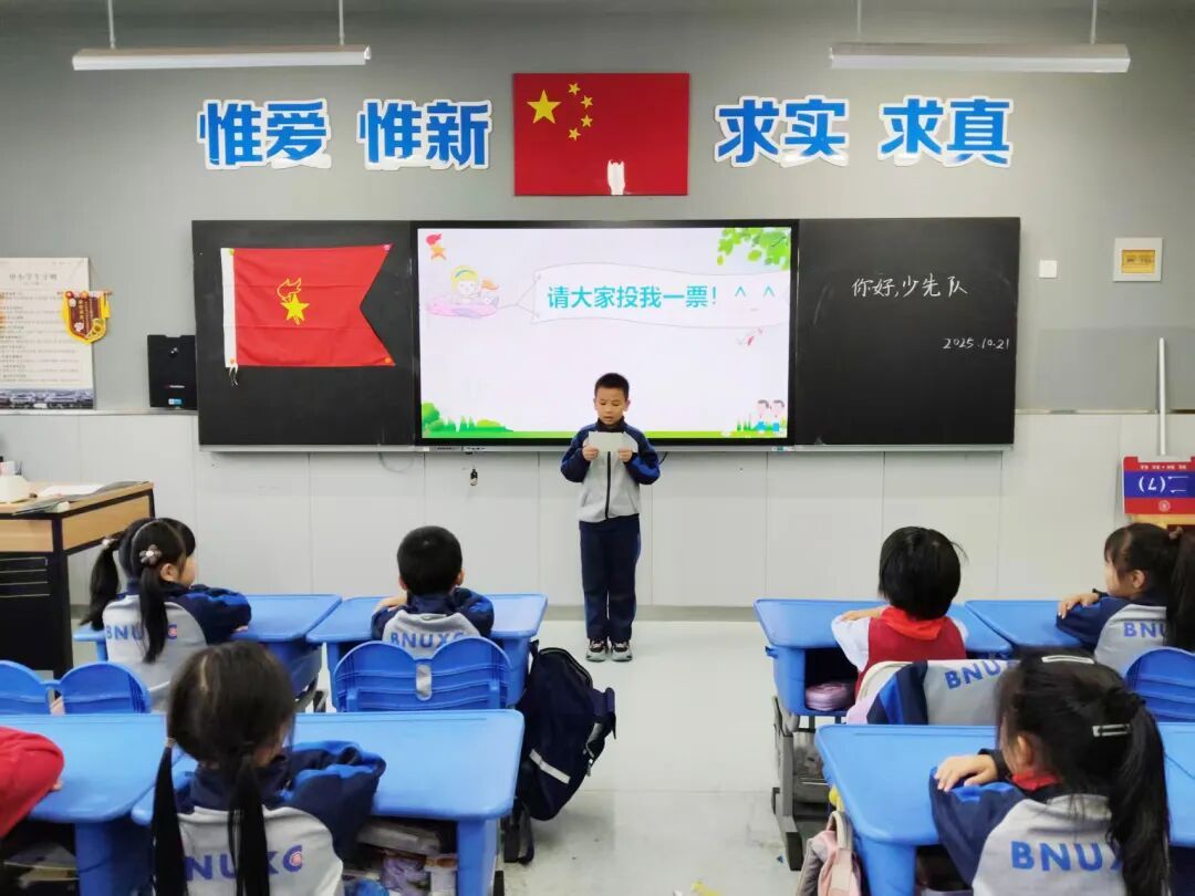 大隊會前,學校少先大隊組織二年級各中隊開展“你好,少先隊”主題隊課,各中隊聚焦“六知六會一做”核心內容,通過輔導員老師的生動講解,讓孩子們學習少先隊歷史、隊旗隊徽含義、隊員作風等知識。在“我競選”活動中,候選隊員們以“競選演講+才藝展示”的形式,展現出新時代少年的蓬勃朝氣與服務意識。孩子們還積極踐行“一做”要求,主動幫助同學、整理環境衛生,以實際行動詮釋責任與擔當,為加入少先隊做準備。