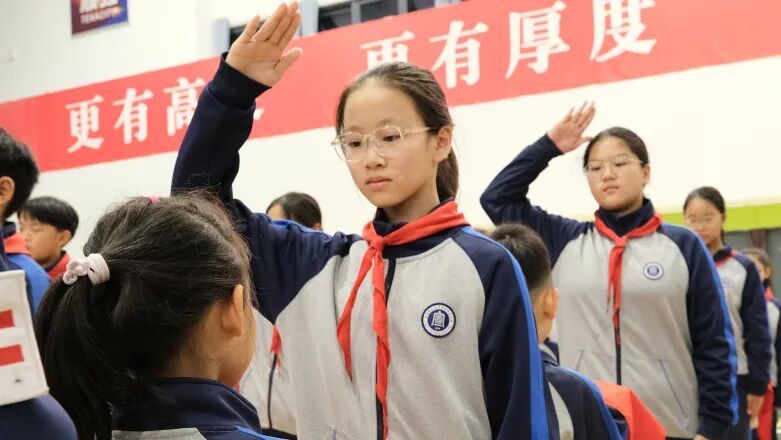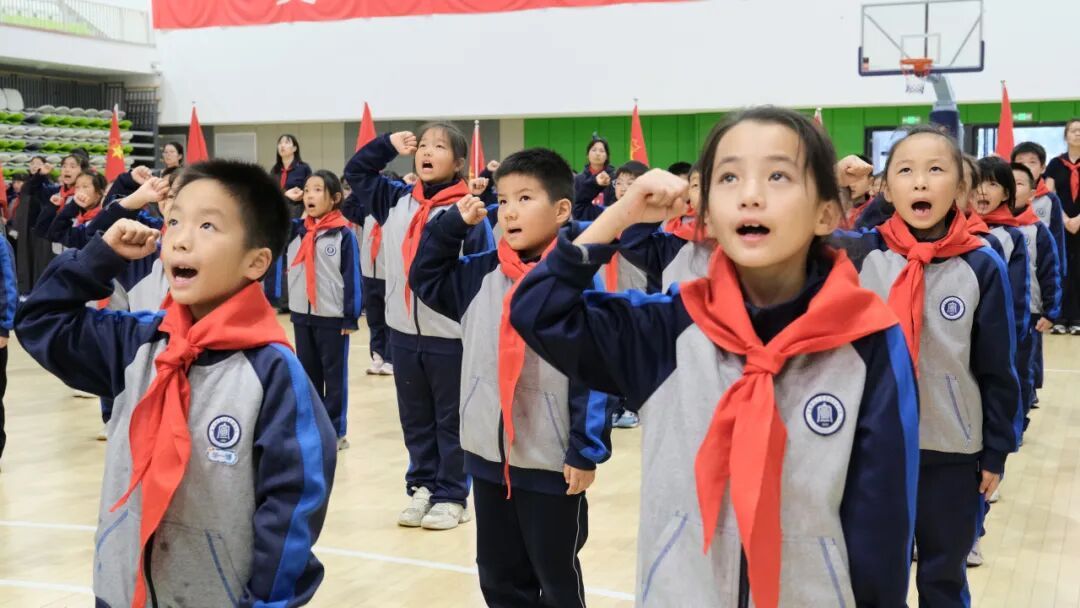 全體隊員齊唱《少年有志》,伴隨手勢舞,展現新時代少年的朝氣與力量。在大隊輔導員魯佳老師的帶領下,呼號聲響徹校園,信念扎根心底。“準備著,為共產主義事業而奮斗!”“時刻準備著!”激昂的呼號聲回蕩在校園,也深深烙印在每一位新隊員的心中。此次入隊儀式,不僅讓新隊員們感受到了加入少先隊的光榮與自豪,更在他們心中播下了愛黨、愛國、愛人民的種子。相信他們將以紅領巾為動力,在星星火炬的指引下,勇敢追夢,茁壯成長!